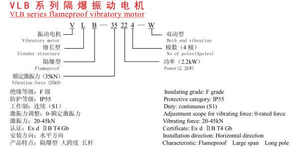 VLB、VLBL系列戶外隔爆振動(dòng)電機(jī)設(shè)計(jì)成細(xì)長(zhǎng)結(jié)構(gòu),激振力作用點(diǎn)距離(地腳孔的距離)特寬,尤其適用于寬距離處傳遞激振力的場(chǎng)合,廣泛用作石油行業(yè)泥漿分離篩激振源。泥漿分離篩裝配此類振動(dòng)電機(jī),VLB系列戶外隔爆振動(dòng)電機(jī) VLBL系列戶外隔爆振動(dòng)電機(jī)運(yùn)行更平穩(wěn),構(gòu)件受力更均勻,有效延長(zhǎng)其使用壽命。VLBL系列是在VLB系列基礎(chǔ)上結(jié)合油田的使用狀況,新研發(fā)的一種鋁合金殼體的新型振動(dòng)電機(jī)。其結(jié)構(gòu)合理、質(zhì)量輕,參振質(zhì)量與同類產(chǎn)品相比大幅度降低。VLB、VLBL系列產(chǎn)品可單獨(dú)使用,亦可組合使用。其防爆性能符合GB3836.2-2000《爆炸性氣體環(huán)境用電氣設(shè)備第二部分:隔爆型“d”》的規(guī)定,防爆標(biāo)志為dIIBT4,適用于 II類A、B級(jí)T4組別可燃性氣體或蒸汽與空氣形成的爆炸性混合物的場(chǎng)所。