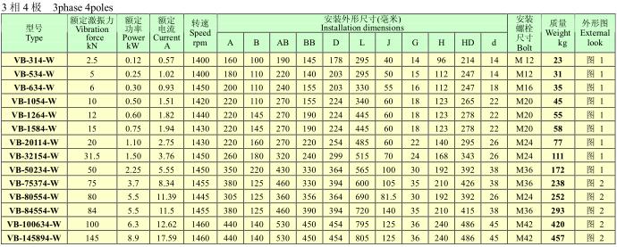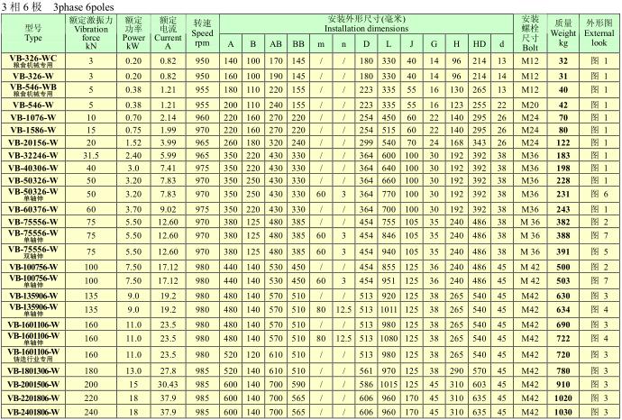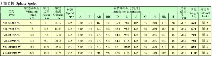 VB系列振動(dòng)電機(jī),功率0.12~25KW,2、4、6、8極,激振力為2.5~300KN,共計(jì)56個(gè)規(guī)格。