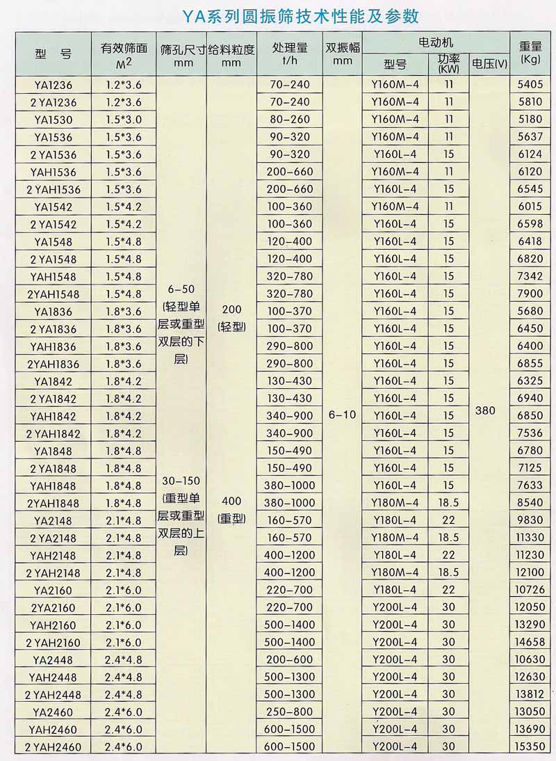 YA系列圓振篩是一種運動軌跡為圓的篩分設(shè)備,該機采用國外先進技術(shù)設(shè)計而成,具有技術(shù)參數(shù)先進,振動強度大,處理能力大,篩分效率高等特點,適合于選礦、選煤、建材、電力及化工等部門作物料分級使用。